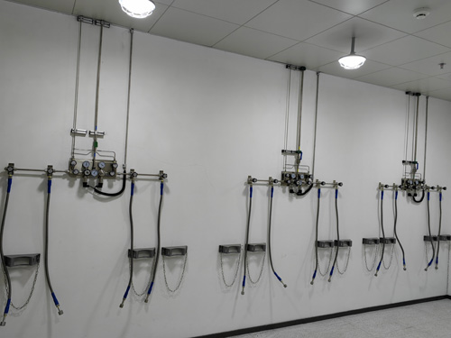 8.氣瓶間內的氣物氧氣瓶與壓上下調整器相互之間按照SS316L各類高壓變壓器電金屬質橡膠橡膠管對接無滲透到。各類高壓變壓器電橡膠橡膠管為韌性橡膠橡膠管,以確保對接的方便簡潔性。并自導防護衣鋼纜,防范極端主義問題下,氧氣瓶閥壞損等跡象產生的各類高壓變壓器電“抽鞭”事情。壓上下調整器與給水管的對接途徑為雙環卡套。