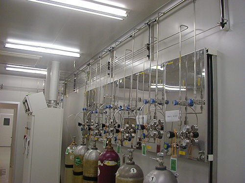 由于純度為99.8%以上的液氨可以裝入鋼瓶出售,所以通常可直接使用,在室溫下有0.8MPa左右的壓力,如果使用氨用減壓閥降至常壓放出后,就可得到純度很高的氨氣。如為了除去微量油蒸氣、二氧化碳等需要特別提純干燥,可使氨氣通過活性炭后再通過裝有堿石灰或固體氫氧化鈉、金屬鈉絲等一系列的干燥管,最后通過五氧化二磷完全干燥。